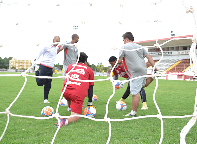 preparação física dos goleiros é intensa no Estádio Presidente Vargas. Na tarde